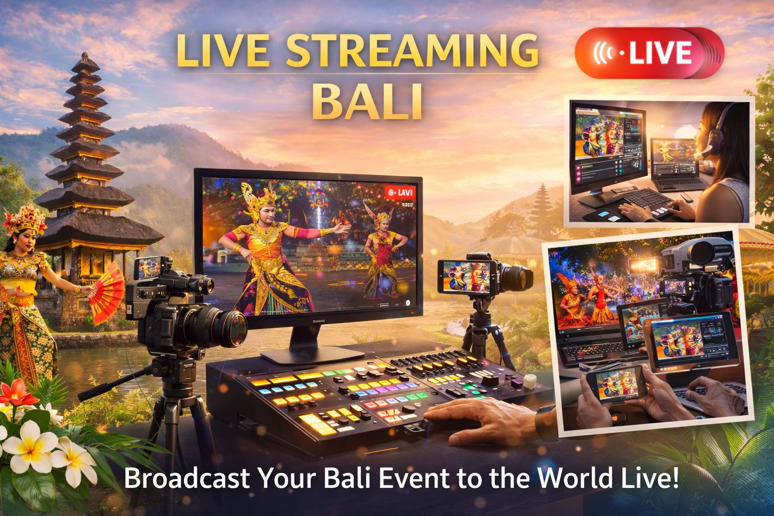 Sedang mencari jasa live streaming Bali yang profesional, stabil, dan berkualitas broadcast? Kami menyediakan layanan live streaming lengkap untuk berbagai jenis acara mulai dari wedding, corporate event, seminar, launching produk, hingga hybrid event berskala nasional maupun internasional.